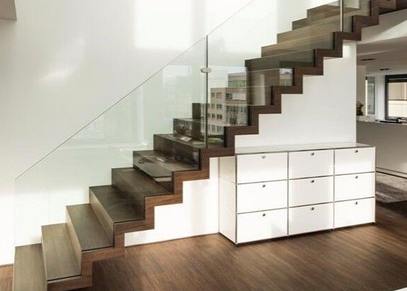 Modern Straight Flight Staircase Zig Zag Stringer Timber Wooden Stair Glass Railing Wire Banister Images |